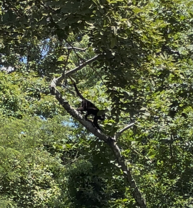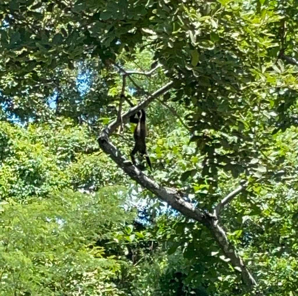 Yesterday was our first full day in Costa Rica, and, oh boy, a lot happened. It looks like everyday something new is going to occur. Our first animal encounter happened while we were in the pool. As we swam to cool off, howler monkeys jumped from tree to tree behind us. It was quite amazing, we saw a baby monkey crawl onto its mom’s back. Today I am looking forward to seeing more animals, including the leafcutter ants that made their home right next to ours. Fruits are delicious here, but my mom and dad won’t let me and Nene open the coconut we found 😆. Miss all you and hope to call or visit soon.