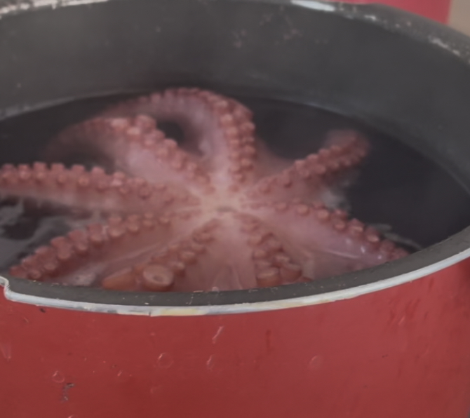 On Saturday, I cooked an octopus. I blanched, marinated, then grilled it. The marinade soaked into the octopus really nicely, so it tasted slightly like spicy lime. It was also very tender, the perfect octopus flavor and texture.